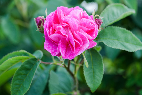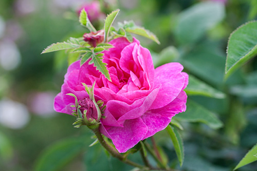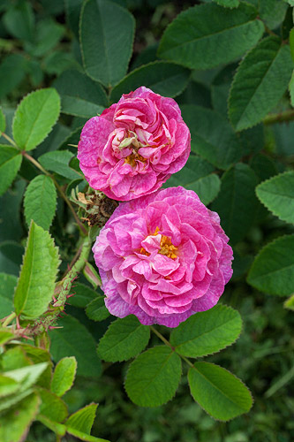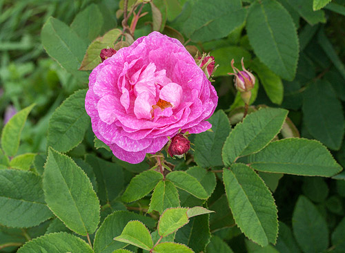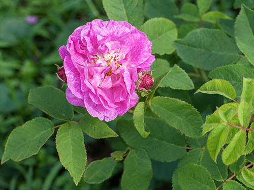 | Pysty pensas. Soikeat tumman vihreät lehdykät. Kukka kerrottu, pallomainen, marmoroitu vaalea purppura. Pitkät, erittäin liuskoittuneet verholehdet. | |