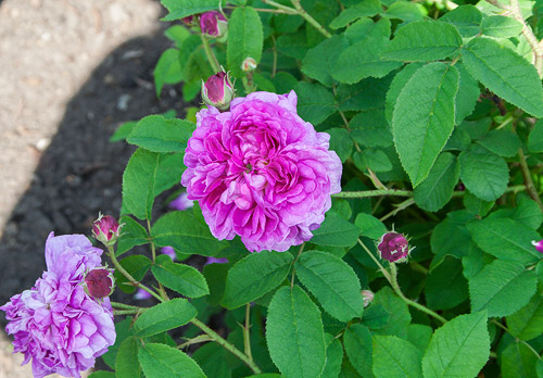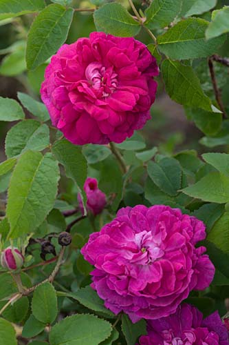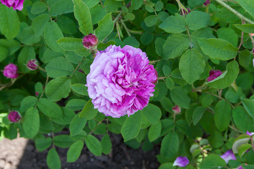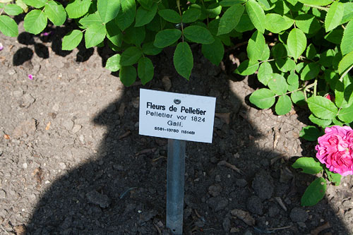 | 100 cm korkea, vähäpiikkinen pensas. Lehdykät vaaleat, pienet teräväkärkiset. Kukka kerrottu, karmiininpunainen keskiosa, reunat sinivioletit. Vahva tuoksu. Upea kukka muistuttaa ‘Robert le Diablea’ |