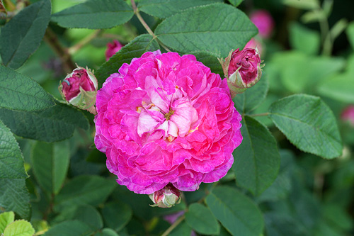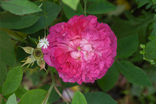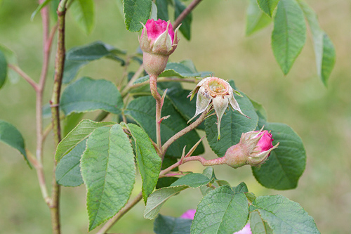 | Pensas 130 cm korkea. Paksut lehdykät, teräväkärkiset, kaksi paria. Kukka makea kirsikanpunainen, rosetti vaaleampi, reunat hiukan sinertävät. Kukkapohja maljamainen nystykarvainen. Lyhyt kukkaperä nystykarvainen. Verholehdet lyhyet, leveät, liuskaiset. | |