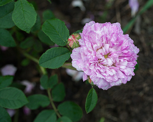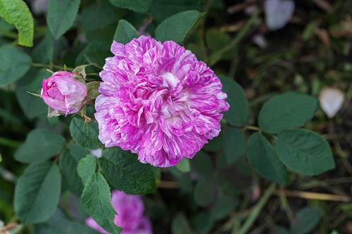 | Tummanvihreät lehdykät. Ainakin ensimmäisenä kesänään 'Incomparable' kukki todella pitkään. Kerrannainen kukka, rosetti, vaalean purppuranpunainen marmoroitu, vaalenee. Tuoksuva. | |