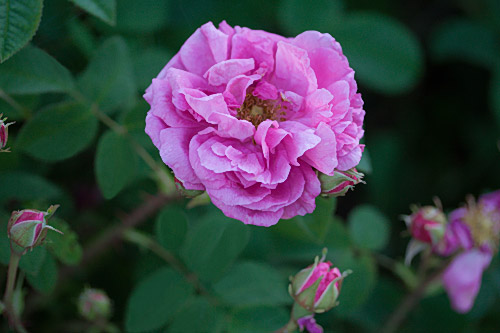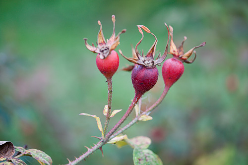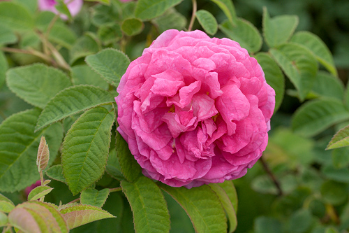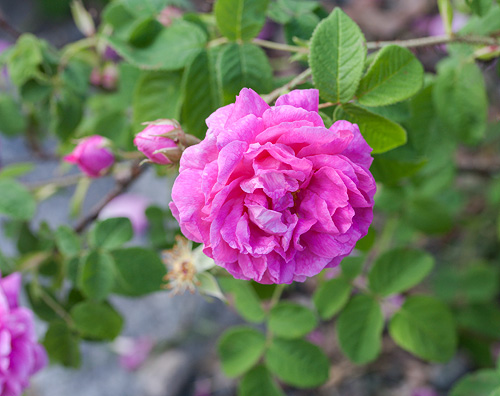 kaarevat oksat. Isoja kolmiomaisia ja suoria piikkejä. Aniliini, myöhemmin lilahtavan aniliini, reunat vaalenevat, vaaleita täpliä. Keltaiset heteet näkyvät. Tuoksuu. Runsaasti lämpimän tiilenpunaisia kiulukoita. Kiulukassa nystykarvoja. Liuskoittuneet (3 x) verholehdet sivulle päin, putoavat myöhemmin. Korvakkeissa nukkaa. 'Pikkalan Kaunotar' muistuttaa 'Hypathiaa' (Rosa gallica-ryhmä). |