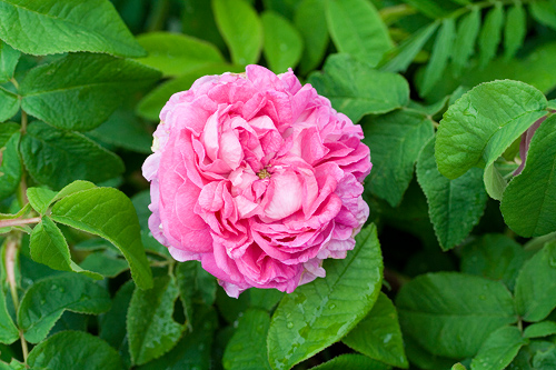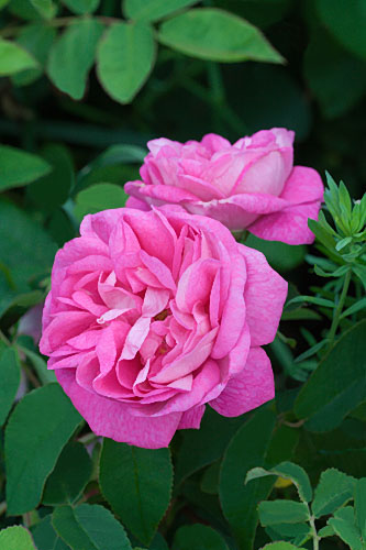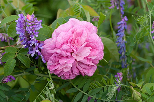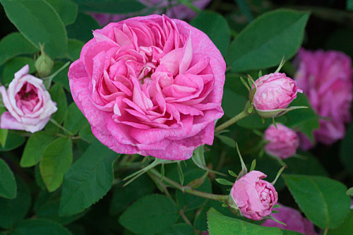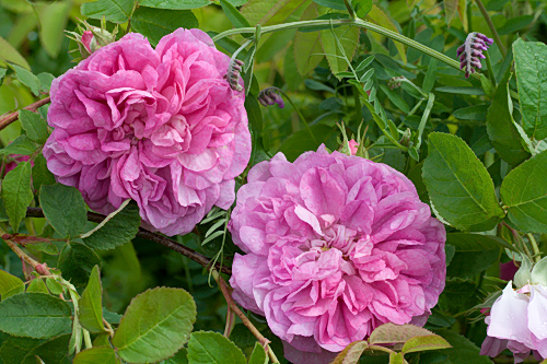 | F: C'est un hybride 'Charles de Mills'. Les fleurs doubles en quartiers, rose lilas, très parfumées. | |