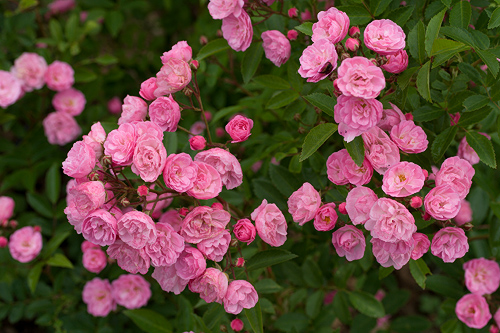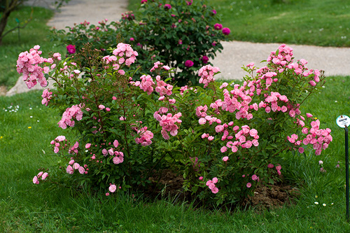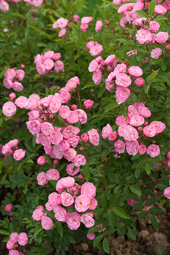 Pensas 60 - 100 cm. Kukka puolikerrottu (9-16 terälehteä), pieni, vaaleanpunainen, miedosti tuoksuva