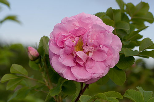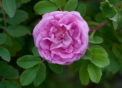 | Kerrannainen kukka 8 cm, voimakkaan aniliininvärinen keskusta, reunat vaaleammat, lilanvaaleanpunaiset, vaalenee tasaisen väriseksi. Keskellä nurin kääntyneitä terälehtiä, heteet eivät näy, tuoksuu imelältä. Vaaleanpunaiset nuput. Lehdet vaaleat | |