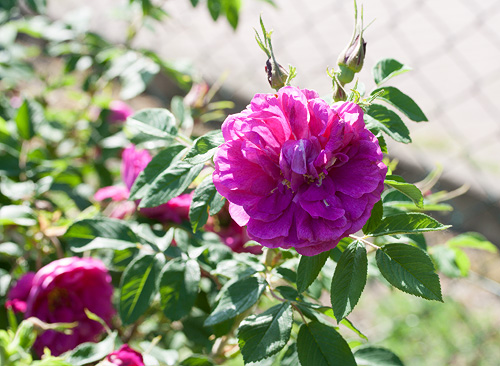 | Pensas 150 cm korkea ja erittäin kestävä. Punaiset nuput. Kukka: läpimitta 7 cm, hunajainen tuoksu, aniliininpunainen, joitakin valkoisia raitoja. Usein 3 kukkaa yhdessä. Muodostaa runsaasti kiulukoita. | ![]() |
