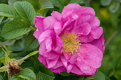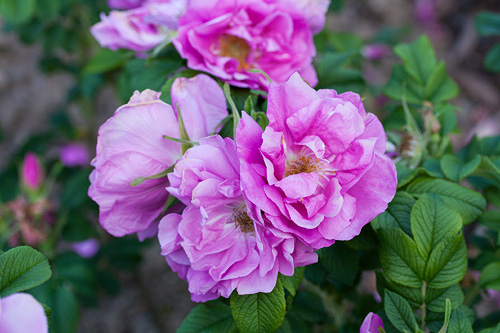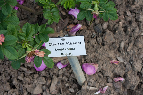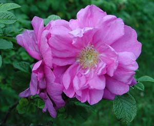 | Matala pensas, joka ei näytä oikein menestyvän meillä. Kauniit, tuoksuvat kukat ovat 7-9 cm leveät, puolikerrannainen, 20 terälehteä. Ruusu kukkii syksyllä uudestaan. | ![]() |