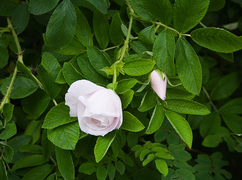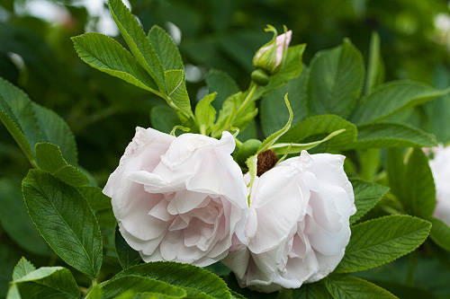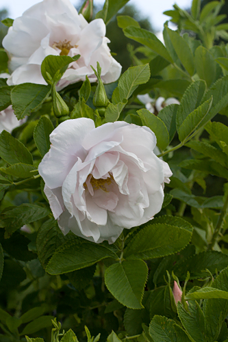 | F: Un arbuste remontant, très haut. Les fleurs blanches, doubles. | |