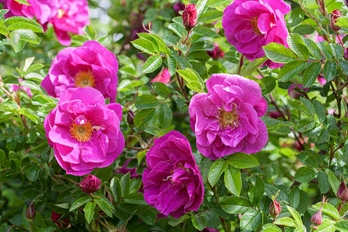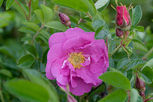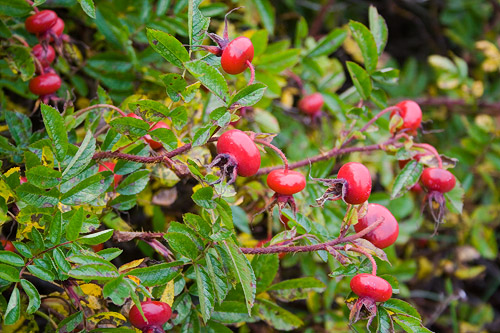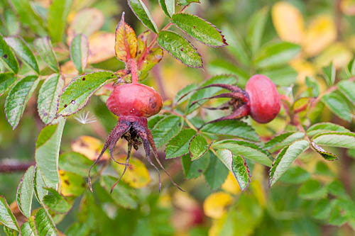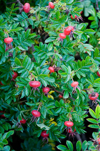 | 150 cm korkea pensas, joka on koristeellinen myös syksyllä. Kiiltävät pitkulaiset kapeat lehdykät. Punainen syysväri. Kiulukat litteänpyöreät tomaatinpunaiset. Karvaiset verholehdet eteenpäin. | |
