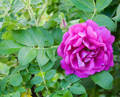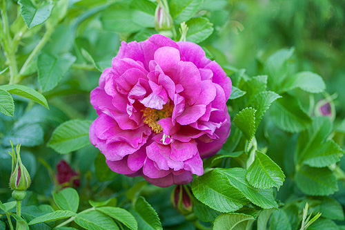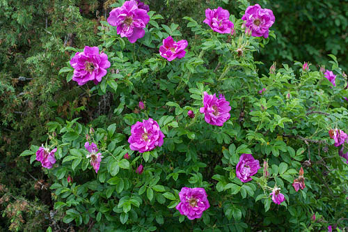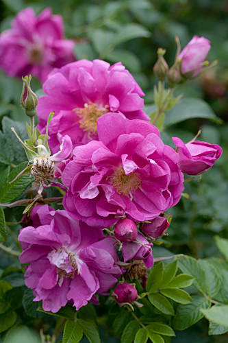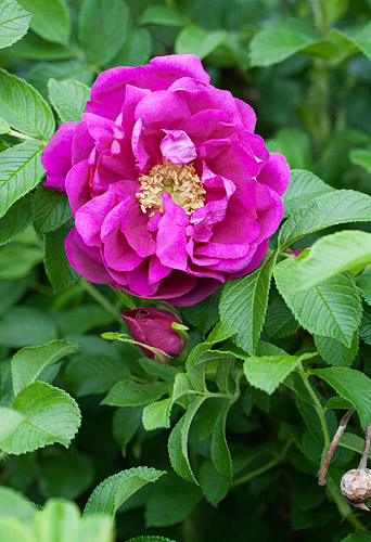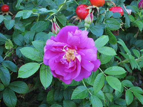| 1-1,5 m korkuiseksi kasvava, pyöreä pensas. Runsas kukinta jatkuu keskikesästä myöhäiseen syksyyn asti. Purppuranpunainen kukka on kerrottu, tuoksuva. Kiulukoita muodostuu paljon. Syksyllä pensas on edelleen koristeellinen, kun se on täynnä kiulukoita ja kukkia. |