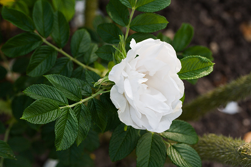 syksyyn asti runsaasti. Kukka isokokoinen, 10 cm, puhtaanvalkoinen,