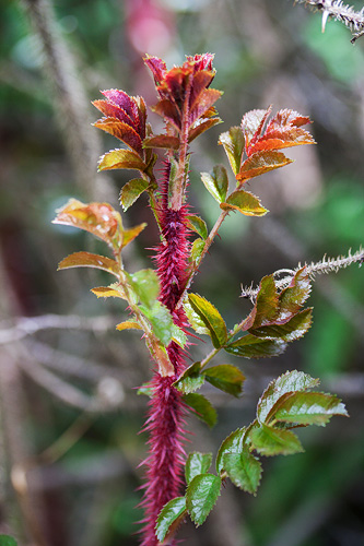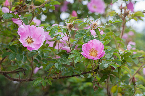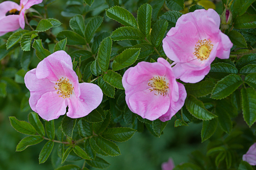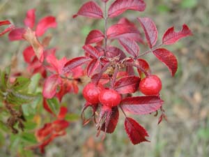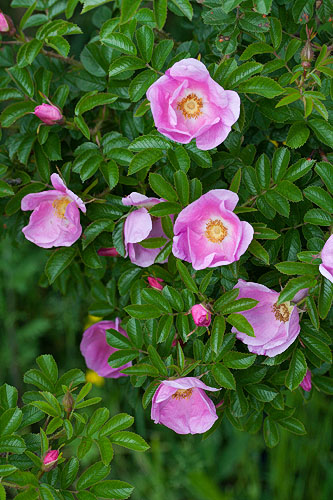 Yksinkertainen kukka voimakkaan vaaleanpunainen, vaalenee laikukkaaksi. Tuoksuu voimakkaasti. Punaiset nuput. Kiulukat pienet oranssinpunaiset, litistyneet, pitkät verholehdet sojottavat ylöspäin. Kiulukka litistynyt pyöreä, kirkkaan, myöhemmin tumman punainen. Verholehdet eteenpäin. Kukkaperä ja verholehdet nystykarvaiset. Syysväri huomiota herättävän kaunis: tumman punainen - kirkkaan punainen - keltainen. |