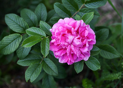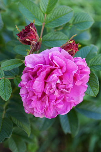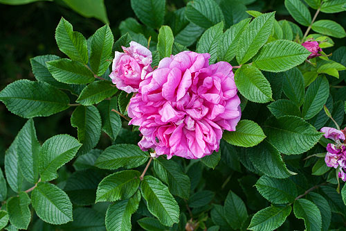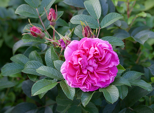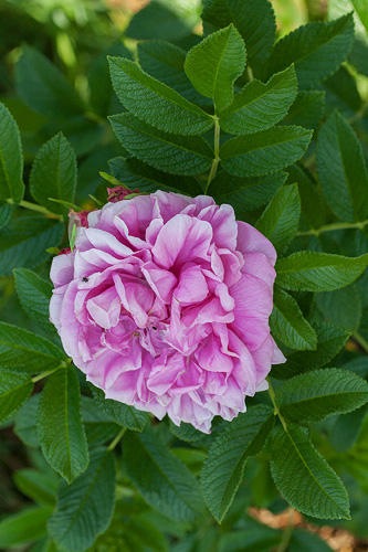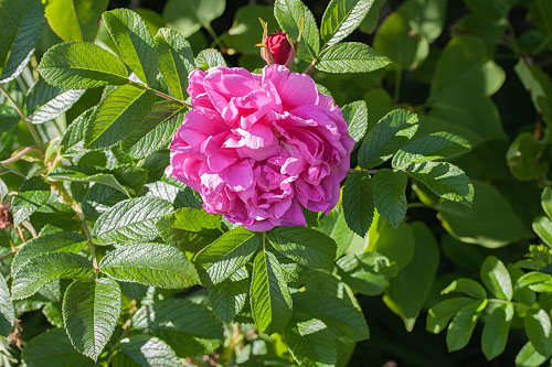 Pensas on metrin korkuinen. Lehdykät tummanvihreät. Se kukkii syksyyn asti. Kerrannainen kukka on suuri, rosetti, roosa. Kiulukoita ei muodostu.