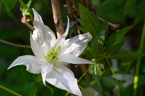3-4 m korkea. Valkoiset kerrannaiset kukat ovat 6-8 cm leveitä.