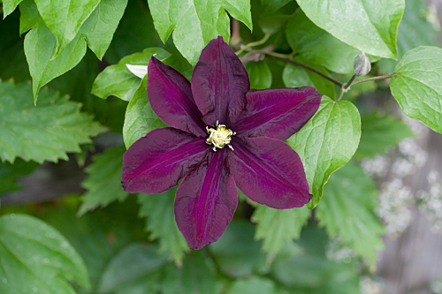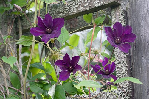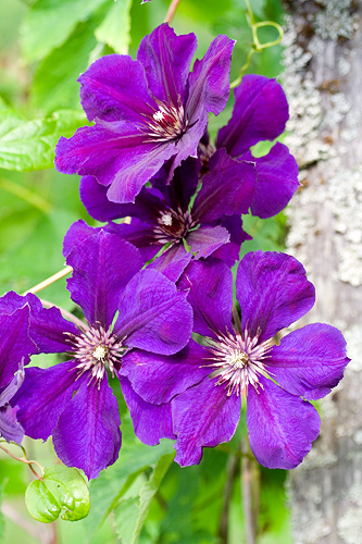 1,8-2,4 m. Yksinkertaiset, samettisen tummanpurppuranpunaiset, 12-15 cm leveät kukat.